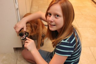 This is a really easy way to help your pet stay healthy. Sunny, our golden retriever, is really easy! She just sits there and lets you brush her teeth. You really need to do the outside, not the inside so much. We do their teeth every other day. You can brush them every day, but doing it at least once a week is helpful.