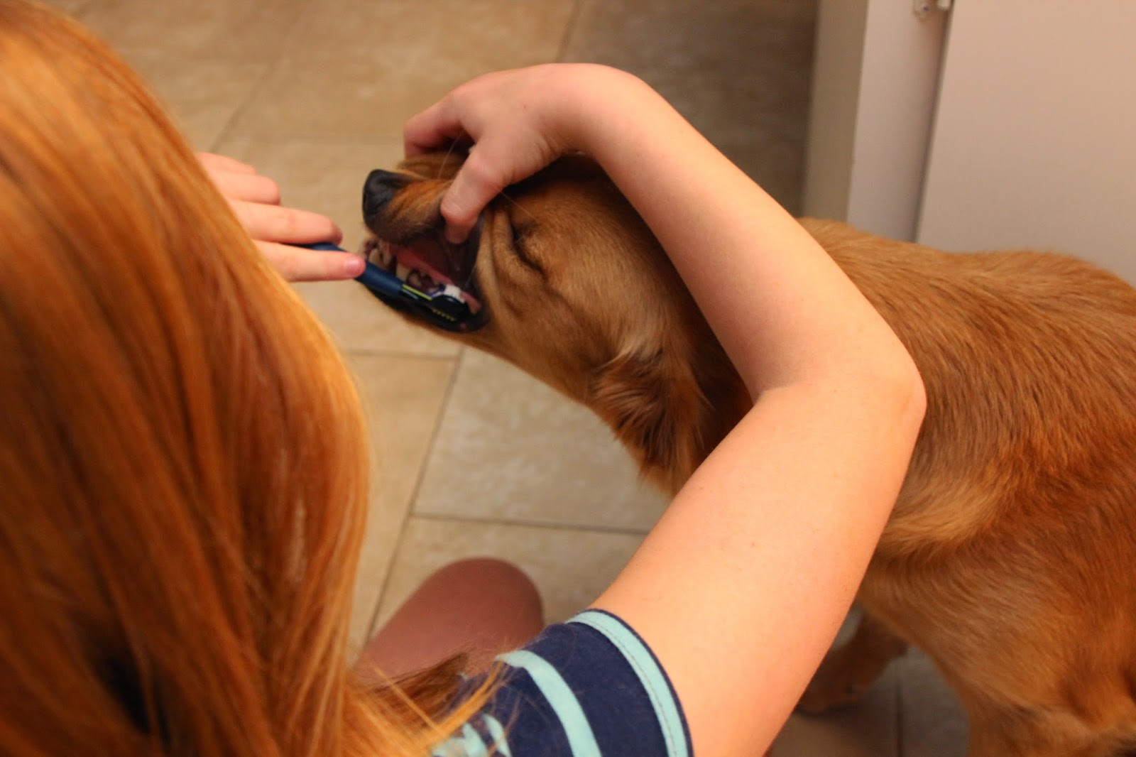 This is a really easy way to help your pet stay healthy. Sunny, our golden retriever, is really easy! She just sits there and lets you brush her teeth. You really need to do the outside, not the inside so much. We do their teeth every other day. You can brush them every day, but doing it at least once a week is helpful.