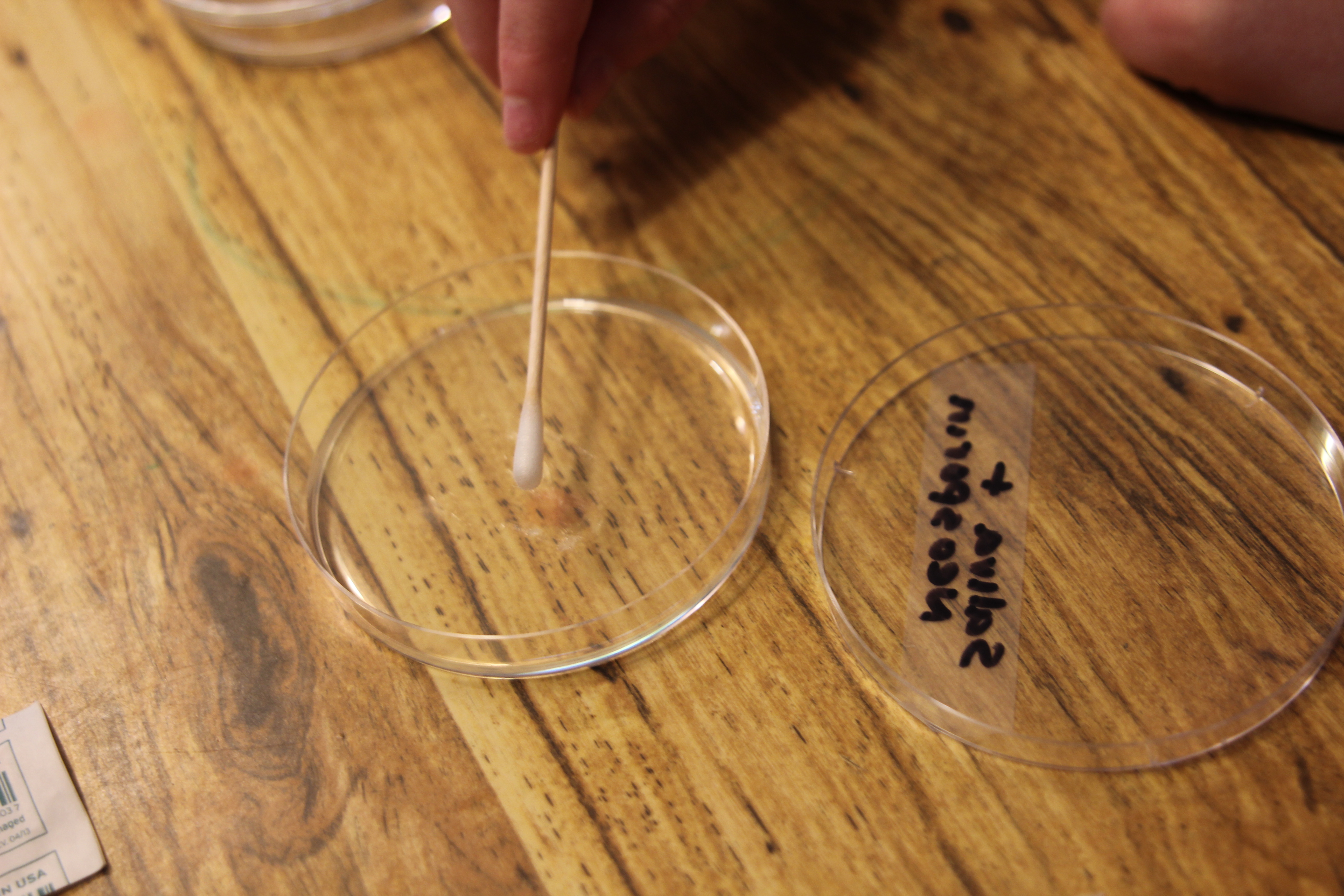 We bought the materials on the internet. We got a kit of 20 petri dishes, sterile cotton swabs and agar.